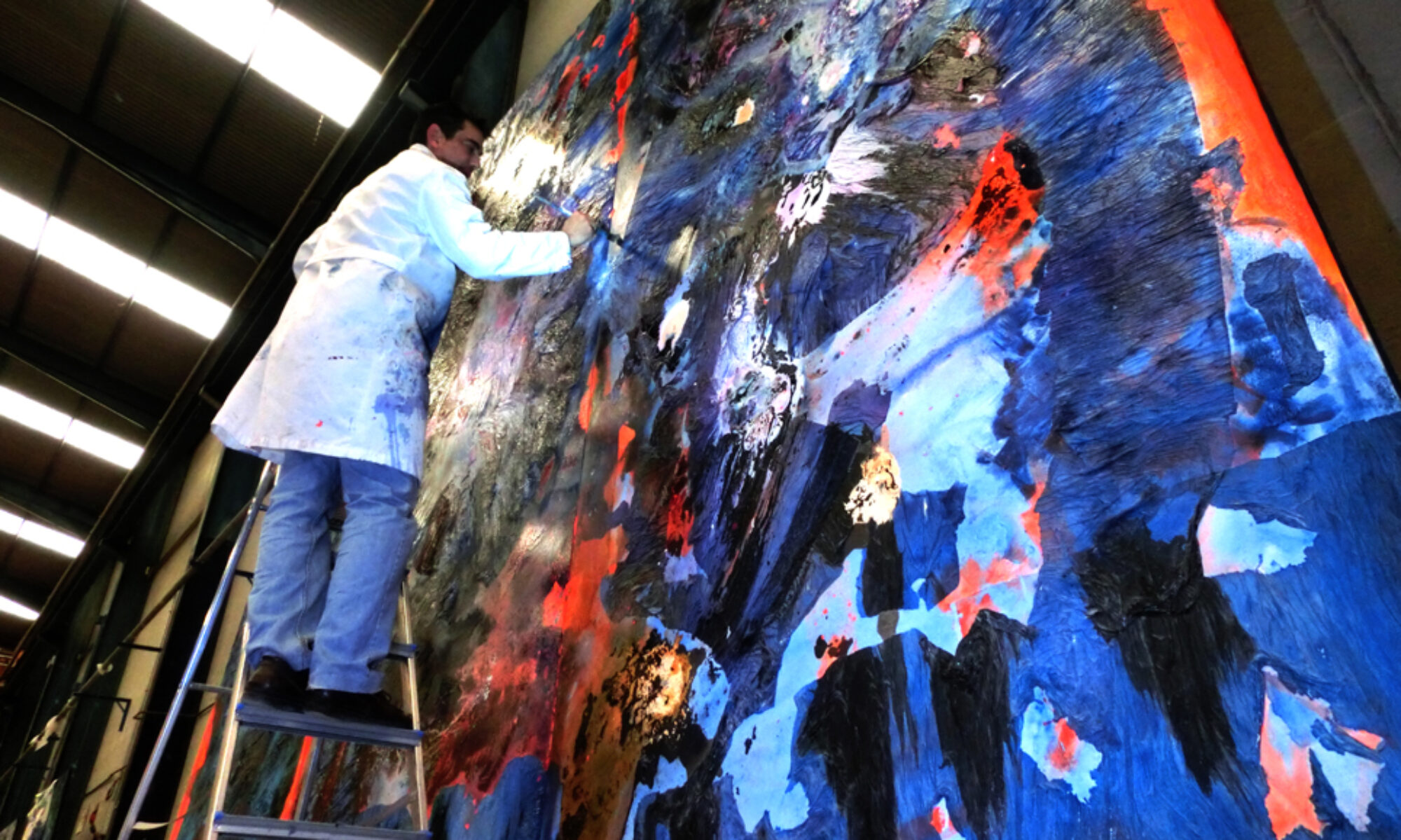 “Rojo Sobre Humano” was my first collection, but “Origen” started, and what happened during 9/11 in New York began to create a different way of painting. And the red was blue and the man merged with nature, and I started thinking that I could be a painter. I made some more exhibitions going through Miami and New York to always return to Murcia.